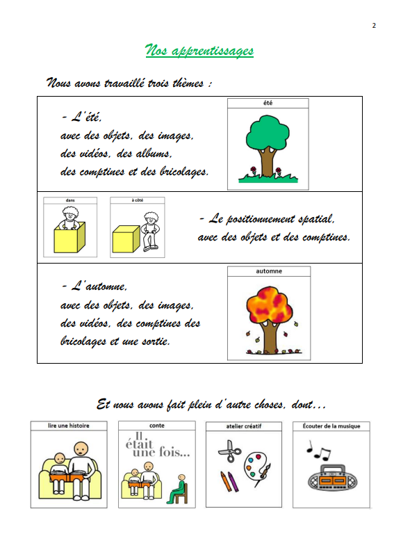 Dans la continuité du travail autour des pictogrammes de communication, les enfants ont appris de nouveaux mots en lien avec les thématiques de Noël, renforçant ainsi leurs compétences en communication et en compréhension.